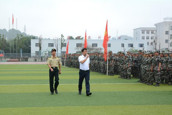 在庄严嘹亮的义勇军进行曲中,五星红旗冉冉升起,全场肃立行注目礼,新生开学典礼暨军训总结大会正式开始。孙彤副书记作开学典礼致辞,他代表全体师生员工对新同学的到来表示了热烈欢迎和诚挚祝贺,向承担训练任务的部队官兵表达了崇高敬意和由衷感谢,还对即将翻开人生新篇章的同学们提出了殷切希望。他希望同学们首先要养成良好的学习习惯,善于提问自学,注重文理兼修;其次需养成良好生活习惯,走出宿舍,走向室外,奔跑在球场上,漫步在山野间;再次,需养成修身习惯,面对他人养成尊重习惯,面对困难,养成坚韧习惯,面对诱惑,养成自律习惯,克服懒庸,养成进取习惯。