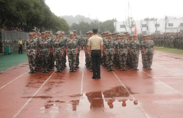 新同学组成的方阵喊着嘹亮的口号经过主席台