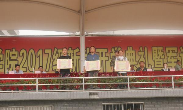大会对2017级新生高考成绩优异者进行了奖励,表彰了军训先进集体、军训先进个人、军训先进系部、优秀连队、优秀教导员、优秀班主任,并现场进行颁奖。