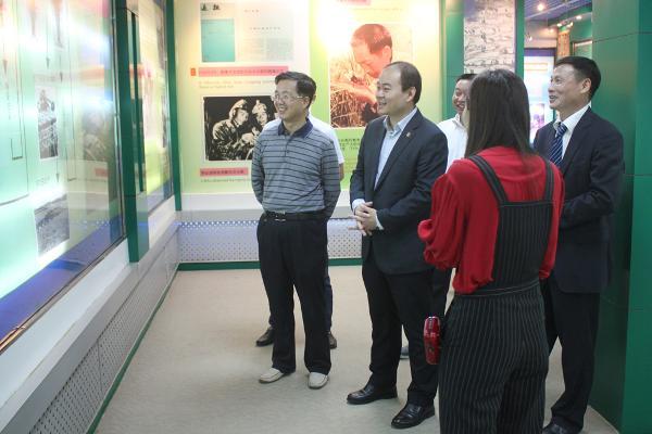 朱副市长在杂交水稻展览馆听取杂交水稻研发历程