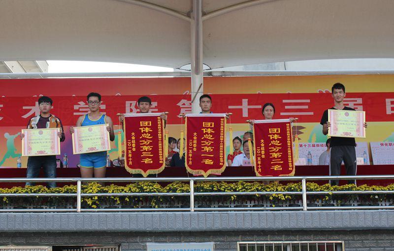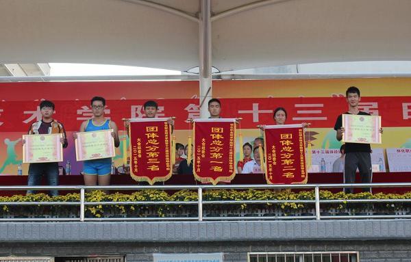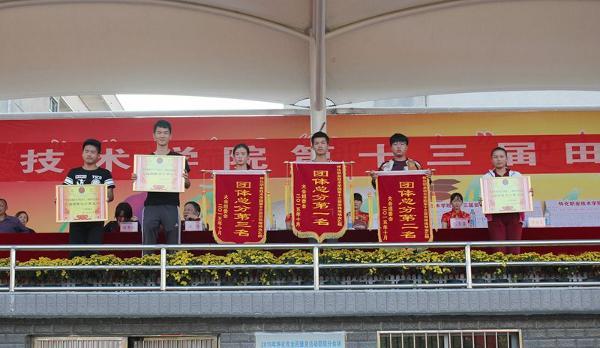 总裁判长宣布成绩,本届运动会,商贸管理系、建筑工程系、环境与生物科技系分别获甲组团体总分第一名、第二名、第三名。商贸管理系、信息与艺术设计系、建筑工程系分别获得乙组团体总分第一名、第二名、第三名。环境与生物科技系、动物科技系、电子电气工程系、人文科技系等四个系获道德风尚奖。