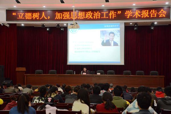 4月1日,中南大学刘新庚教授受我院的邀请,在大会议室举办以“立德树人,加强思想政治工作”为题的学术报告会,我院院领导、中层干部、政治理论课部全体教师及全体学生工作者聆听了本次会议 。会议由邬国盛副书记主持。