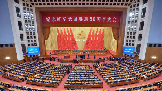 纪念红军长征胜利80周年大会10月21日上午10时在人民大会堂举行。中共中央总书记、国家主席、中央军委主席习近平出席大会并发表重要讲话。讲话实录如下: 同志们: 今天,我们在这里隆重集会,纪念中国工农红军长征胜利80周年。红军长征的那个年代,中国处在半殖民地半封建社会的黑暗境地,社会危机四伏,日寇野蛮侵略,国民党反动派置民族危亡于不顾,向革命根据地连续发动大规模“围剿”,中国共产党和红军到了危急关头,中国革命到了危急关头,中华民族到了危急关头。 面对生死存亡的严峻考验,从1934年10月至1936年10月,红军第一、第二、第四方面军和第二十五军进行了伟大的长征。我们党领导红军,以非凡的智慧和大无畏的英雄气概,战胜千难万险,付出巨大牺牲,胜利完成震撼世界、彪炳史册的长征,宣告了国民党反动派消灭中国共产党和红军的图谋彻底失败,宣告了中国共产党和红军肩负着民族希望胜利实现了北上抗日的战略转移,实现了中国共产党和中国革命事业从挫折走向胜利的伟大转折,开启了中国共产党为实现民族独立、人民解放而斗争的新的伟大进军。 这一惊天动地的革命壮举,是中国共产党和红军谱写的壮丽史诗,是中华民族伟大复兴历史进程中的巍峨丰碑。 在这里,我代表党中央、国务院和中央军委,代表全党全军全国各族人民,向领导红军创造这一历史伟业的毛泽东、周恩来、朱德同志等老一辈革命家,向在长征中浴血奋战和在各地坚持革命斗争的红军指战员,向当年支援红军长征的各族人民特别是各革命根据地人民,向所有健在的红军老战士,致以崇高的敬意! 我提议,全体起立,为在长征途中和在各地革命斗争中英勇牺牲的革命烈士默哀! 同志们!穿越历史的沧桑巨变,回望80年前那段苦难和辉煌,我们更加深刻地认识到,长征在我们党、国家、军队发展史上具有十分伟大的意义,对中华民族历史进程具有十分深远的影响。 长征是一次理想信念的伟大远征。崇高的理想,坚定的信念,永远是中国共产党人的政治灵魂。中国共产党从成立之日起,就把共产主义确立为远大理想,始终团结带领中国人民朝着这个伟大理想前行。党和红军几经挫折而不断奋起,历尽苦难而淬火成钢,归根到底在于心中的远大理想和革命信念始终坚定执着,始终闪耀着火热的光芒。 长征途中,英雄的红军,血战湘江,四渡赤水,巧渡金沙江,强渡大渡河,飞夺泸定桥,鏖战独树镇,勇克包座,转战乌蒙山,击退上百万穷凶极恶的追兵阻敌,征服空气稀薄的冰山雪岭,穿越渺无人烟的沼泽草地,纵横十余省,长驱二万五千里。主力红军长征后,留在根据地的红军队伍和游击队,在极端困难的条件下,紧紧依靠人民群众,坚持游击战争。西北地区红军创建陕甘革命根据地,同先期到达陕北的红二十五军一起打破了敌人的重兵“围剿”,为党中央把中国革命的大本营安置在西北创造了条件。东北抗日联军、坚持在国民党统治区工作的党组织以及党领导的各方面力量都进行了艰苦卓绝的斗争,都为长征胜利作出了不可磨灭的贡献。 长征的胜利,是中国共产党人理想的胜利,是中国共产党人信念的胜利。“风雨浸衣骨更硬,野菜充饥志越坚;官兵一致同甘苦,革命理想高于天。”在风雨如磐的长征路上,崇高的理想,坚定的信念,激励和指引着红军一路向前。在红一方面军二万五千里的征途上,平均每300米就有一名红军牺牲。长征这条红飘带,是无数红军的鲜血染成的。艰难可以摧残人的肉体,死亡可以夺走人的生命,但没有任何力量能够动摇中国共产党人的理想信念。 长征的胜利,靠的是红军将士压倒一切敌人而不被任何敌人所压倒、征服一切困难而不被任何困难所征服的英雄气概和革命精神。长征向全中国、向全世界庄严宣告,中国共产党及其领导的人民军队,是用马克思主义武装的、以共产主义为崇高理想和坚定信念的。长征路上的苦难、曲折、死亡,检验了中国共产党人的理想信念,向世人证明了中国共产党人的理想信念是坚不可摧的。 长征是一次检验真理的伟大远征。真理只有在实践中才能得到检验,真理只有在实践中才能得到确立。长征途中,红军面临着凶恶残暴的追兵阻敌,面临着严酷恶劣的自然环境,还面临着同党内错误思想的激烈斗争。经过长征,党和红军不是弱了,而是更强了,因为我们党找到了中国革命的正确道路,找到了指引这条道路的正确理论。 长征途中,党中央召开的遵义会议,是我们党历史上一个生死攸关的转折点。这次会议确立了毛泽东同志在红军和党中央的领导地位,开始确立了以毛泽东同志为主要代表的马克思主义正确路线在党中央的领导地位,开始形成以毛泽东同志为核心的党的第一代中央领导集体,这是我们党和革命事业转危为安、不断打开新局面最重要的保证。 长征的胜利,使我们党进一步认识到,只有把马克思列宁主义基本原理同中国革命具体实际结合起来,独立自主解决中国革命的重大问题,才能把革命事业引向胜利。这是在血的教训和斗争考验中得出的真理。 长征的胜利,实现了在追求真理、坚持真理的基础上全党的空前团结、红军的空前团结。没有这种思想上政治上的大团结,中国革命胜利是不可能实现的。经过长征的千锤百炼,我们党在思想上不断成熟,成为中国人民进行抗日战争的中流砥柱,成为中国革命赢得最后胜利的中坚力量。 