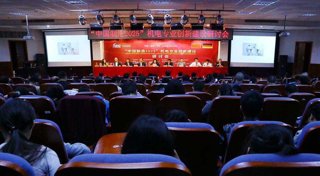 由教育部职业技术教育中心研究所主办的“中国制造2025”机电专业创新建设研讨会10月25日在怀化学院召开。教育部职业技术教育中心研究所副所长高瑛、中鑫创投教育科技有限公司董事长曹凯峰、史陶比尔机器人公司教育行业副总经理杜伟、德国TRLAS总裁Jurgen ohr、怀化市人大常委会副主任李应友及怀化学院、怀化职业技术学院等国内外企业、高校的60余名代表参加了会议。