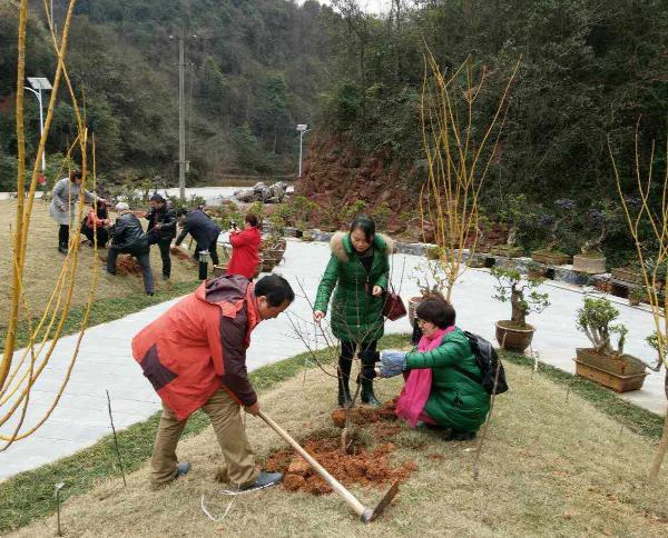 支部党员为老年公寓种植水果苗