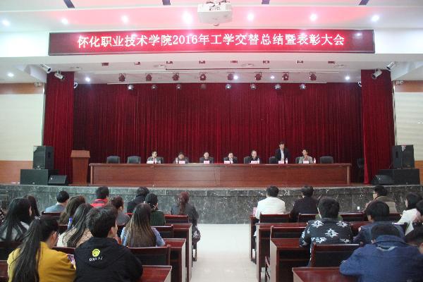 正是春光最盛时,桃花枝映李花枝。3月31日下午,我院在大会议室举行了工学交替总结表彰大会,隆重表彰学院2016年工学交替教学优秀系部、优秀教师和优秀学生。党委书记胡佳武、院长王聪田、副院长钱强、督学肖宪龙等院领导出席了本次表彰会,工学交替返校师生、企业代表等四百余人参加了会议。会议由张圣喜副院长主持。