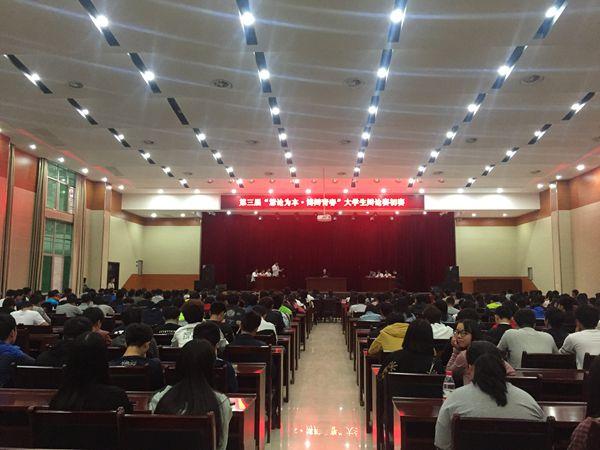 4月18日和19日晚七点,主题为“慧论为本·博辩青春”的第三届大学生辩论赛初赛在大会议室隆重举行。本次辩论赛由院团委主办。经过四场精彩的辩论,动物科技系、环境与生物科技系、电子电气工程系和建筑工程系四个代表队以优秀的表现从院八个系部代表队脱颖而出,获得参加 4月26日晚的复赛资格。