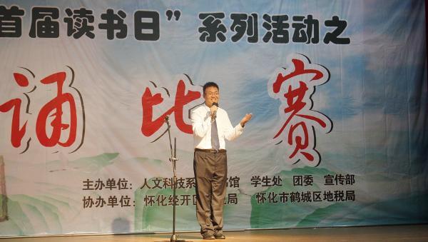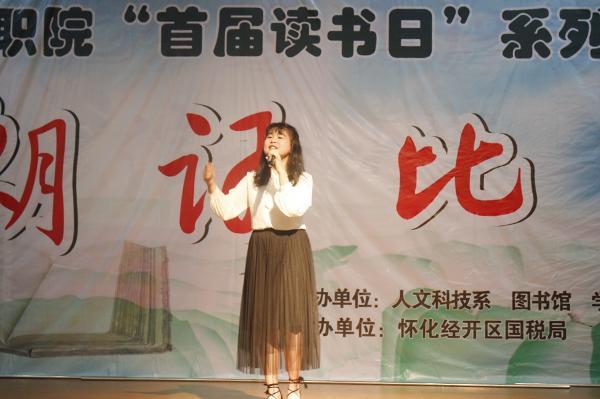 本次朗诵比赛由我院主办,经开区国税局、鹤城区地税局协办,旨在庆祝4月23日“世界读书日”,培养大学生的诵读兴趣,提高大学生的文化素质,营造浓厚的读书氛围,打造书香校园。