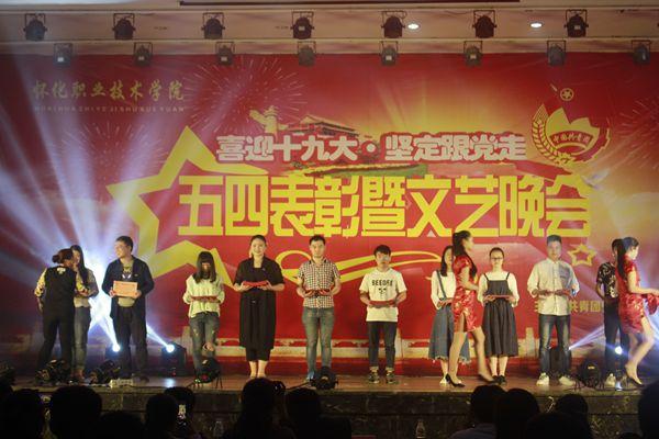 院长助理廖冬云首先宣读表彰决定,她代表学院对先进集体和先进个人给予了祝贺和鼓励。各系部和院团委为大家带来了形式多样、精彩纷呈的节目表演。有慷慨激昂的朗诵《我骄傲,我是中国人》;有充满青春活力的街舞《Boom》;也有灵动优美的舞蹈《春之声》等等。在欣赏视觉盛宴的同时,出席的领导们为获奖的系部和代表颁发了奖项。晚会颁发了“优秀共青团员”荣誉称号97人,“优秀共青团干部”荣誉称号42人,“五四红旗团支部”荣誉称号6个,“五四红旗团总支”荣誉称号2个。