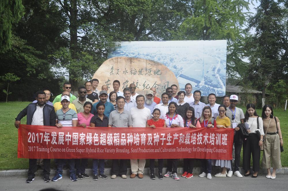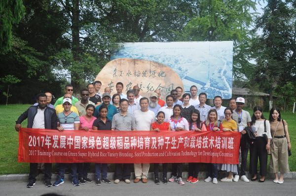 调研期间,胡佳武书记还与21位在此参加2017年发展中国家绿色超级稻品种培育及种子生产和栽培技术培训的外国学员合影留念。